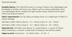 The Frida Shirt works in a range of fabrics from lightweight and breathable to thicker and more cosy. Fabrics such as cotton poplin/lawn, linen, very lightweight denim, needlecord, light woollen weave, flannel and brushed cotton are all good options.
