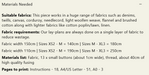 This piece works in a huge range of fabrics such as denims, twills, canvas, corduroy, needlecord, light woollen weave, flannel and brushed cotton along with lighter fabrics like cotton poplin/lawn, linen.