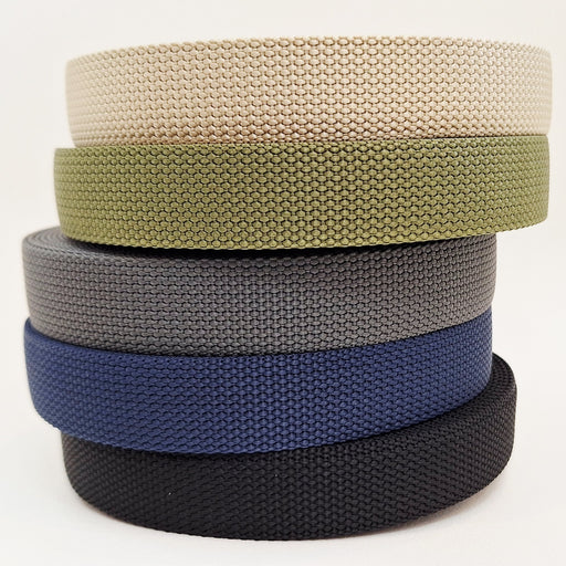 These are pre-cut 1 metre lengths of a lovely 1" wide webbing in a range of colours.  1" wide polypropylene x 1 metre length Choose your colour